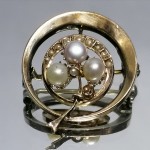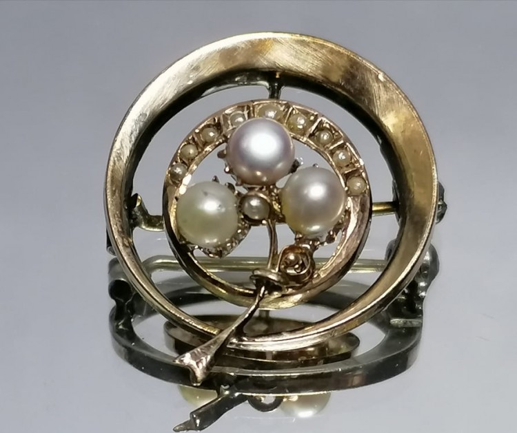 wysadzanym malutkimi perełkami. Ta część broszki wykonana została z niskiej próby złota.