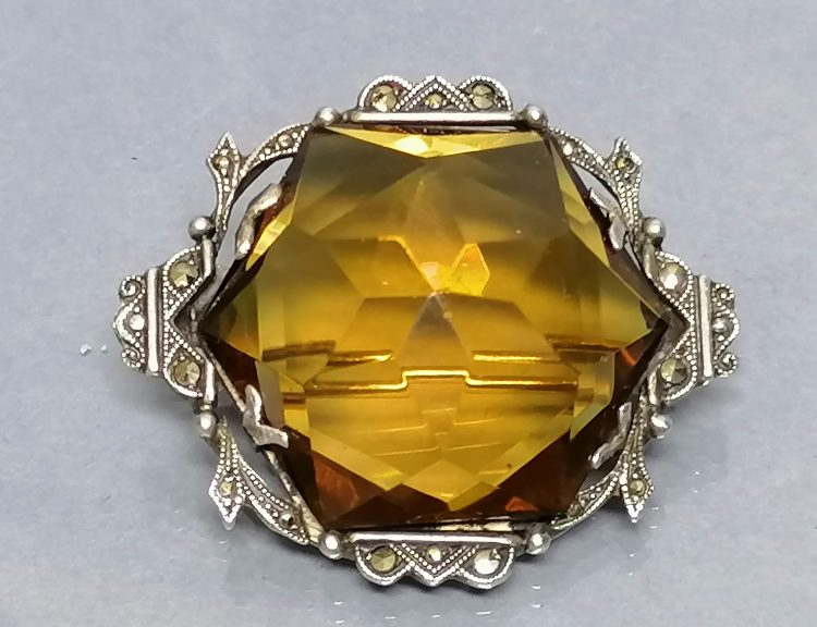 Stara broszka z topazem i markazytami, srebro 830