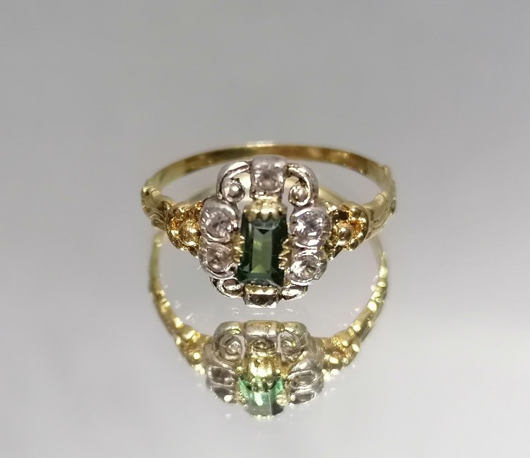 Pierścionek z zielonym turmalinem w formie prostokąta