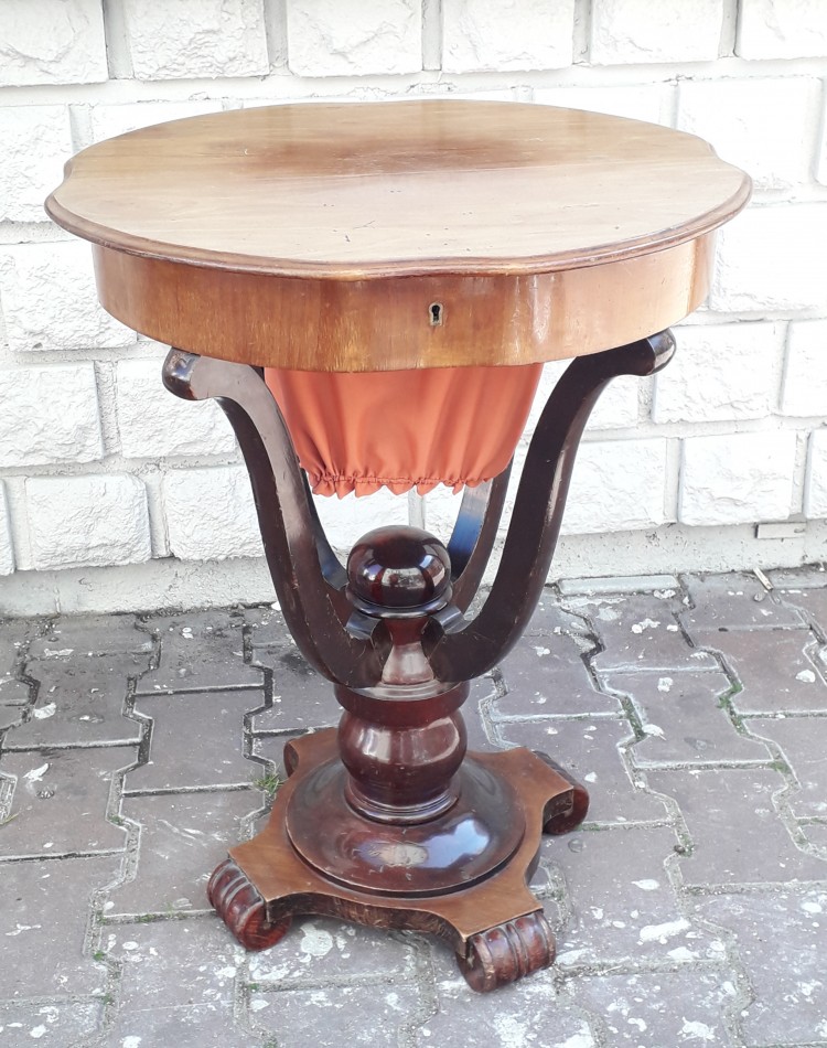 Oryginalny, rzadko spotykany stoliczek przeznaczony do robótek ręcznych.