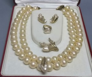 Perły Majorica, srebro złocone, biżuteria vintage