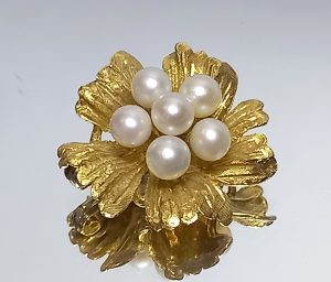 Broszka z perłami, złoto 18K
