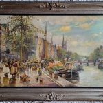 pierwszym planie tuż nad samym kanałem kwiaciarki w otoczeniu barwnych bukietów.