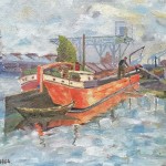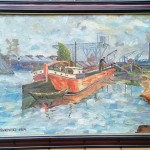 Obraz z 1964 roku zatytułowany „W stoczni gdańskiej remontowej”,