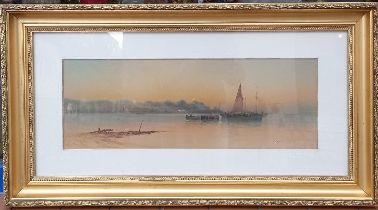 „Widok na port w West Cowes”- angielskie, dawne malarstwo.
