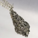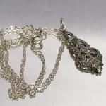 Uroczy, delikatny wisiorek o lekkiej, ażurowej formie.
