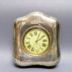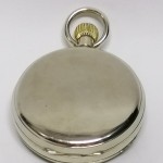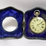 Pokrywa obita srebrem przeszklona nad tarczą zegarka.