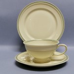 Filiżanka sygnowana znakiem stosowanym w 1949, spodek w 1938 a talerzyk 1939 roku.