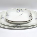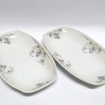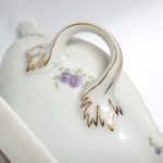 Biała porcelana zdobiona prześlicznymi bukietami fiołków – dekoracja wykonana techniką kalkomanii.