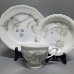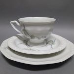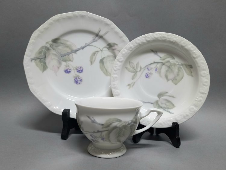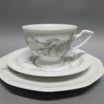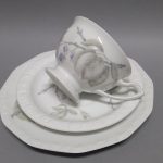 Biała porcelana dekorowana na brzegach charakterystycznym reliefem.