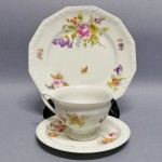 Sygnatury: na filiżance po 1957 r.,na spodku z 1936 r., na talerzu z 1938 r.