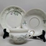 Delikatna, biała porcelana o dość prostych formach.