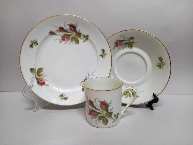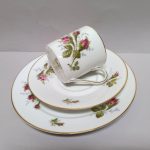 różanym wzorem – został wykonany techniką kalkomanii.